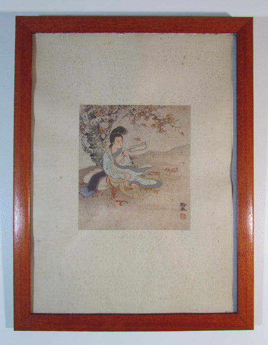 Japanese Woodblock Print Of A woman Sitting In The Garden circa 1950