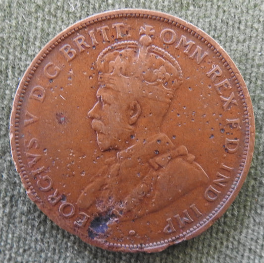 Australian 1919 1d 1 Penny King George V Coin - Disfigured With Error
