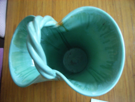 Trent Potery Green & Brown Drip Glazed Waisted Body Double Handled Vase c.1950