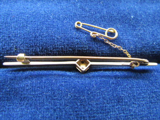 9ct Gold Bar Brooch With Claw Set Diamond Hallmarked Birmingham 1900