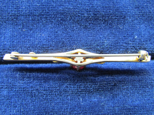 9ct Gold Bar Brooch Set With A Garnet And 2 Diamonds Hallmarked Birmingham 1901