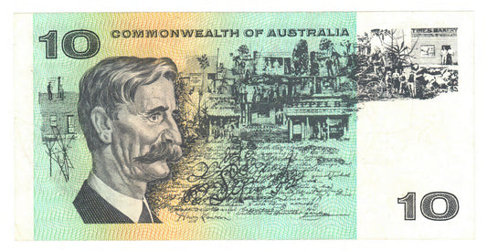 Australian 1974 10 Dollar Phillips Wheeler Banknote s/n - Circulated