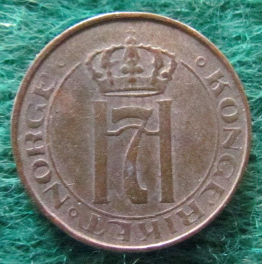 Norway 1925 1 Krone Coin Four Crowned Haakon VII Monograms