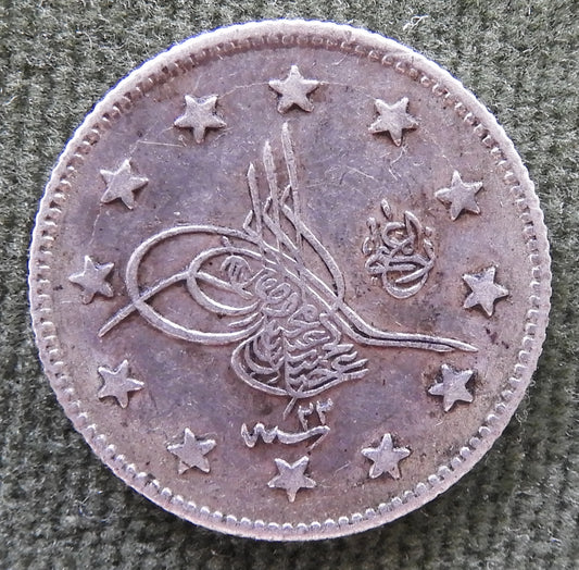 Ottoman Empire 1895 2 Kurus "el-Ghazi" to right of Toughra Coin Abdul Hamid II 1293/1895/١٢٩٣/٢٣