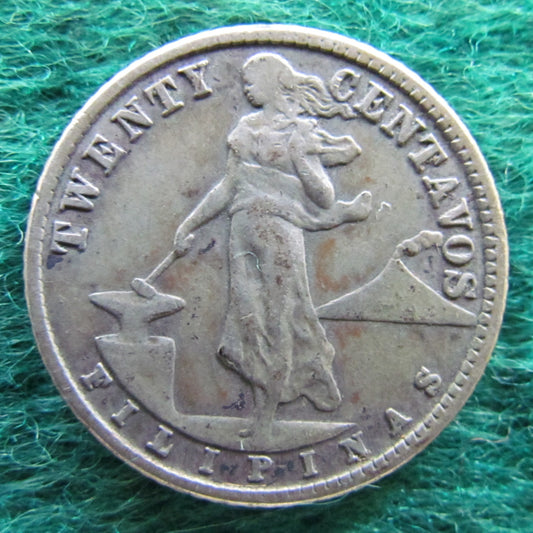 Philippines 1910 S 20 Centavo USA Coin - Circulated