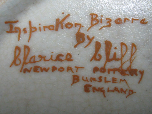 1930's Clarice Cliff Inspiration Bizarre Flower squat vase Newport with hand signed backstamp