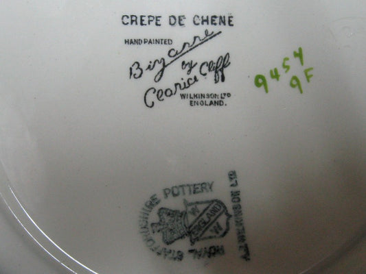 Clarice Cliff 1930s The Biarritz Royal Staffordshire Bizzare Saucer Plate Printed Backstamp