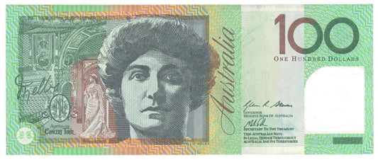 Australian 1990 100 Dollar Fraser Higgins Banknote s/n ZHA 878137 - Circulated