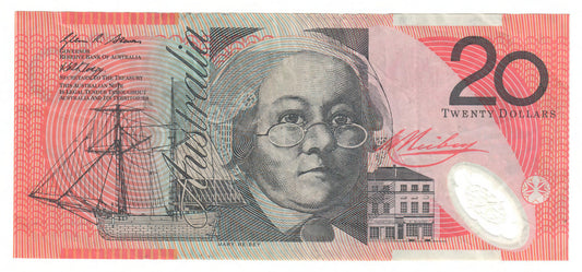 Australian 2008 20 Dollar Stevens Henry Polymer Banknote s/n AA 08484933 - Circulated