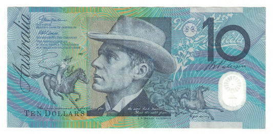 Australian 2013 10 Dollar Stevens Parkinson Polymer Banknote s/n AB 13658599 - Circulated