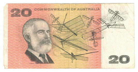 Australian 1972 20 Dollar Phillips Wheeler COA Banknote s/n XGJ 448956 - Circulated