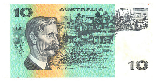 Australian 1990 10 Dollar Fraser Higgins Banknote s/n MCA 911896 - Circulated