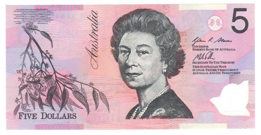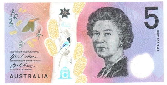 Australian 2016 5 Dollar Stevens Fraser Note s/n DG 161941497 - Grades as UNC