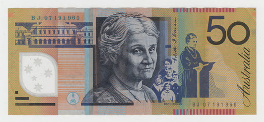 Australian 2007 50 Dollar Stevens Henry Polymer Banknote s/n BJ 07191960 - Circulated