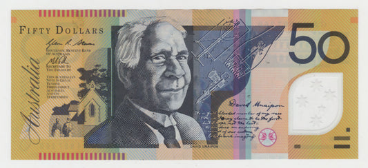Australian 2014 50 Dollar Stevens Parkinson Polymer Banknote s/n GA 14997260 - Circulated