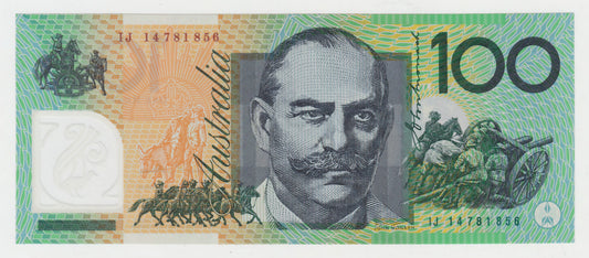 Australian 2014 100 Dollar Stevens Parkinson Polymer Banknote s/n IJ 14781856 - Circulated