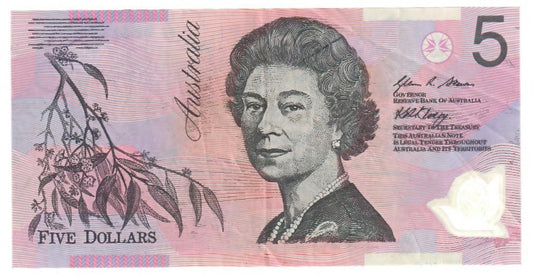 Australian 1998 5 Dollar MacFarlane Evans Polymer Banknote s/n - Circulated