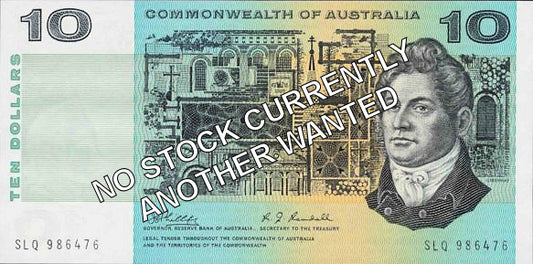 Australian 1983 10 Dollar Johnston Stone Banknote s/n - Circulated
