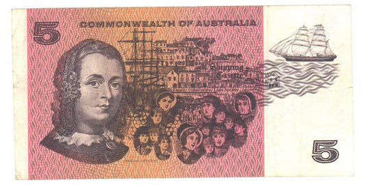 Australian 1976 5 Dollar Knight Wheeler Note s/n - Circulated