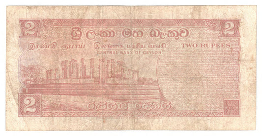 Ceylon 1971 2 Rupee Banknote s/n E/234 690949 - Grades as Fine