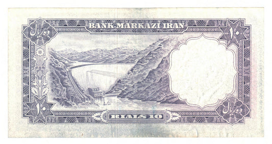 Bank Markazi Iran 1961 10 Rials Banknote P-71 Shah Mohammad Reza Pahlavi