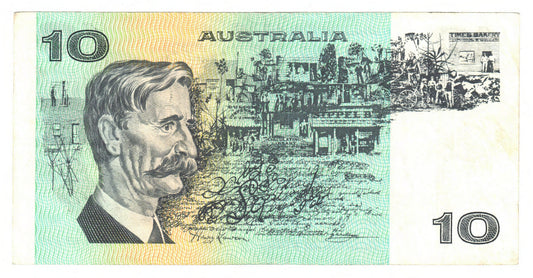 Australian 1976 10 Dollar Knight Wheeler Banknote s/n TGL 543830 - Circulated