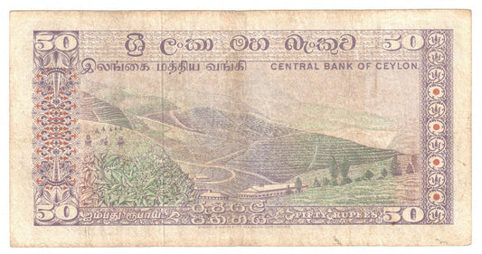 Ceylon 1974 50 Rupee Banknote s/n N/122 91462 - Grades as Fine