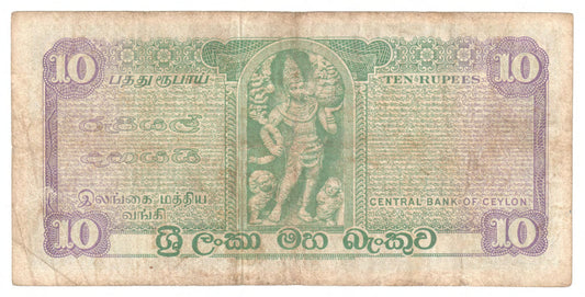 Ceylon 1975 10 Rupee Banknote s/n M/261 971271 - Circulated