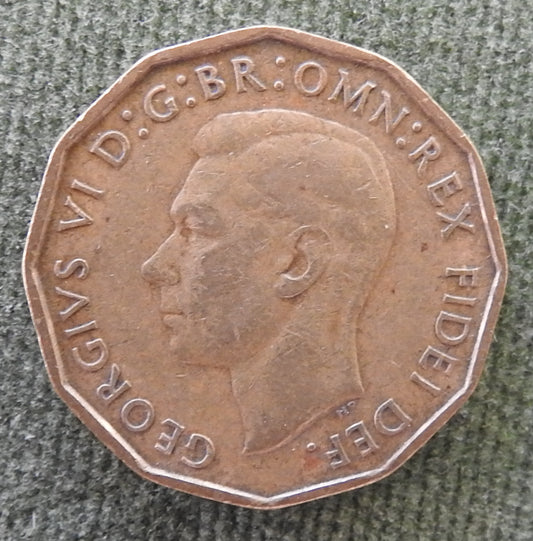 GB British UK English 1952 Three Pence 3p King George VI Coin