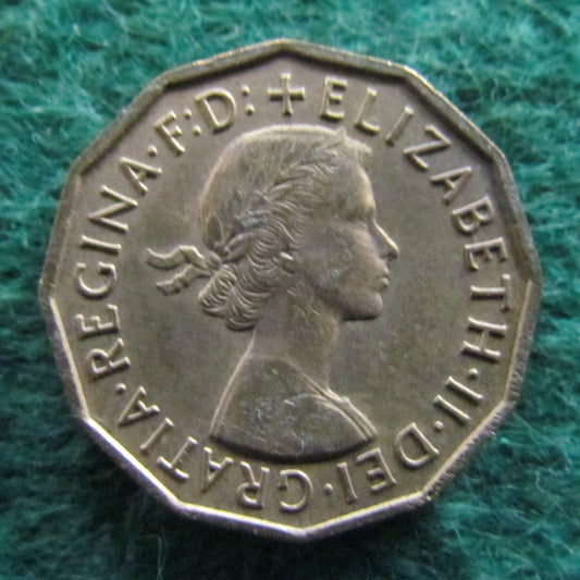 GB British UK English 1954 Threepence Queen Elizabeth II Coin