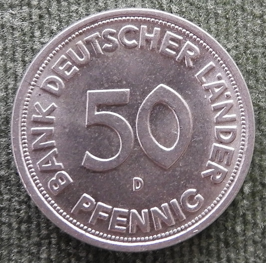 Germany 1949 D 50 Pfennig Coin - Circulated