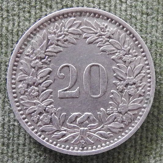Helvetica Switzerland Swiss 1881 20 Rappen Coin