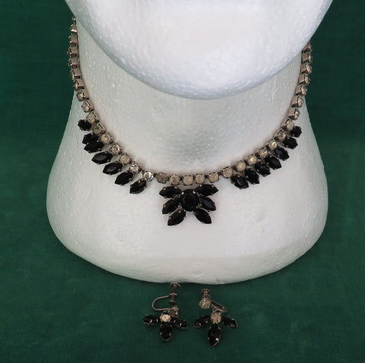 Diamante & Rhinestone Necklace & Earrings Simulating Diamonds & Sapphires