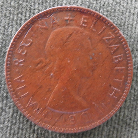 Australian 1959 Half Penny Queen Elizabeth II Coin - Disfigured