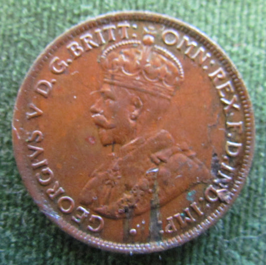 Australian 1920 1d 1 Penny King George V Coin - Variety Rim Nick