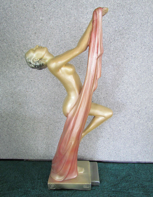 Leonardi Art Deco Naked Lady Draped Figure In Plaster Chalkware Leonardene Nude c1930
