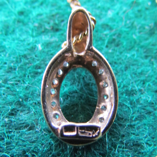 9ct Gold Open Centred Oval Pendant Set With Circumference Diamonds 0.96gms with chain