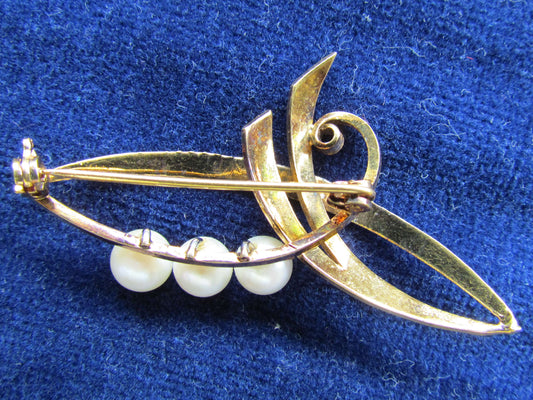 Sterling Gilt Brooch Set With 3 Cultured 6 mm Pearls