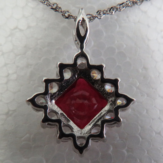 925 Silver Pendant Set With A Manufactured Ruby Surrounded By Claw Set Cubic Zirconia