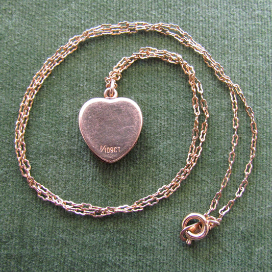 Rolled Gold Heart Shaped Photo Locket With A Red Stone And Unmarked Chain