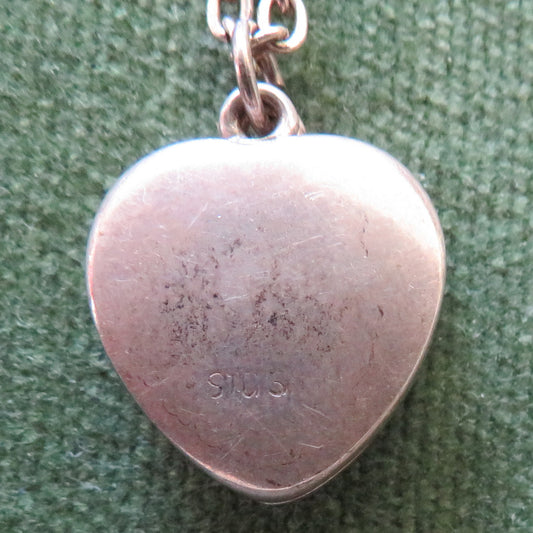 Silver Heart Shaped Photo Locket Cameo Pendant Set With A Garnet With An Unmarked Chain