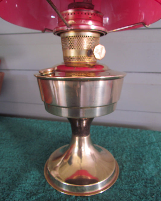 Aladdin Brass Oil Lamp With Red Cased Glass Shade