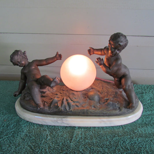 French Cherub Spelter & Marble Table Lamp Early 1900's