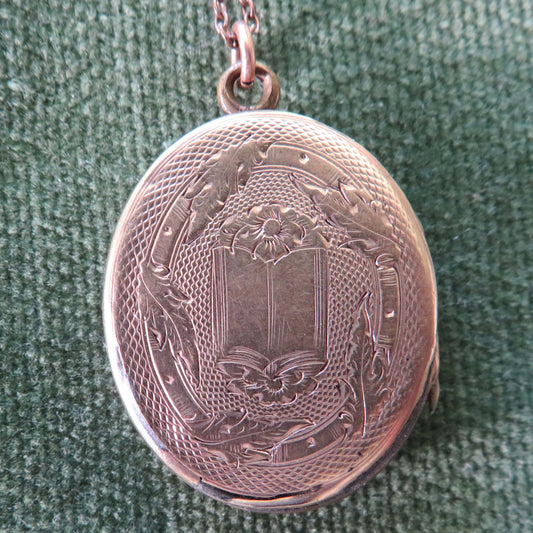 Unmarked Gold Oval Shaped Photo Locket Having A Horshoe Motif With Chain