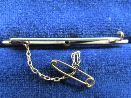 London Made 15ct Gold Tie Bar / Bar Brooch With Machined Decoration