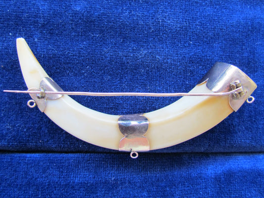 Unmarked Gold Crescent Bar Brooch Set With Turquoise With Safety Chain