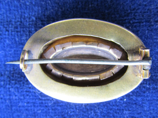 Unmarked Gold Oval Onyx Set Mourning Brooch