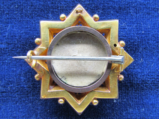 Unmarked Gold Oval Enamel And Seed Pearl Brooch