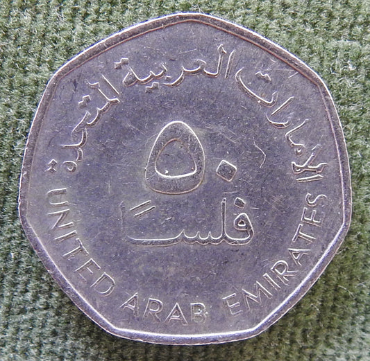 United Arab Emirates 1995 50 Fils Coin Dallah Three Oil Derricks 1415/1995/١٤١٥ - ١٩٩٥