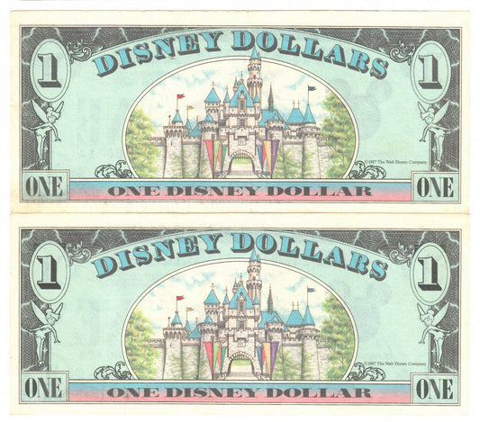 USA $1 1 Disney Dollar - Consecutive Pair Circulated Series A 1979 A00408071A & 72A